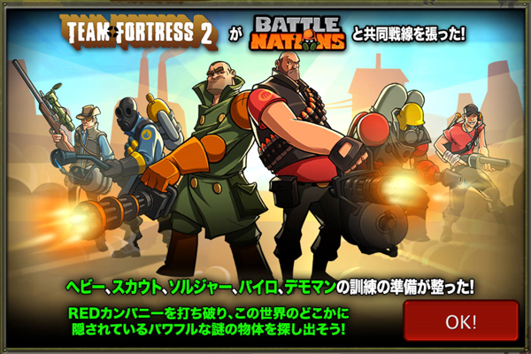 雑記 2014/09/21 ロシアからやってきた 自動的にアップデートができてなかったので再インストールという手動アプデを済ませると……。バトルネーションズの世界に謎のハゲたおっちゃんが迷い込んでいた! Steamのゲーム、Team Fortress 2のキャラだそうでどうもコラボしているらしい。 TF2はプレイしたことがないのでキャラクターとか、ストーリーとか細かい部分は知りません。イラスト交流サイトのpixivでごく稀にファンアートを見かけますね。一時期私はCry of fearというホラーFPSを遊ぼうと思ってSteamをやろうとしてた時期がありました。その時に他に面白そうなゲームを探してたら、このゲームを見つけた記憶があります。たしかFPSだったっけ。空き容量が無くて断念したけどパッと見た感じの世界観は好きですね。また遊んでみたいなぁ。