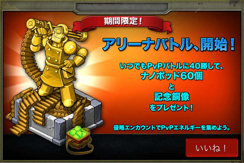 期間限定兵レビュー 2015/06/27 日替わりセール! BNでは日替わりセールを実施中。ちなみにこんなユニット達が出てましたよん。 ■タンククラッシャー:オススメ度:★★☆☆☆未入手のユニットだったので買っちゃいました。特殊な範囲攻撃がやや強め。車両としてはかなり撃たれ弱い部類。コレクションとして買いましたが主力としては使えないかな。 ■レイダー召喚者:オススメ度:★★☆☆☆既に入手済みだったので未購入。ネタ要員(´ω`;)見た目のインパクトが強いのでコレクション用としてオススメ。だってゲタ履いてる丸いおっちゃんだよ。 ■装甲SUV:オススメ度:★★★☆☆既に入手済みだったので未購入。主力としてよく使ってましたが最近になって引退。ボス敵キャラのゴリアテがドロップするファランクスというユニットがこのユニットの上位格として登場するらしいのでちまたでも下火傾向に。 ■さすらいのサムライ:オススメ度:★★★★☆未入手だったユニット。個人的にこのゲームで一番欲しいユニットでした。今となってはもっと強いユニットがたくさんいますが、以前は猛威を振るっていたユニットのひとつですね。単純にカッコいいから欲しかった(´ω`人)■古代偵察機:オススメ度:★☆☆☆☆既に入手済みだったので未購入。残念ながら長所のないハズレのユニット。私の連合ではたこ焼きと呼ばれてました。食べられたらイイのに。■伝説のラプター:オススメ度:★★★★☆既に入手済みだったので未購入。オールラウンダーのアタッカーとして現在でも主力として活躍中。強力で回転率の高い貫通属性攻撃を持ちこれまた強力な打撃属性の対空攻撃を持つのが強み。そこそこの耐久力もありますね。持ってない方にはオススメ! ■ノーマッド:オススメ度:★★★★★既に入手済みだったので未購入。こちらも主力として今でも使ってます。ほぼ全てのDotや状態異常の耐性を持つので後衛としてはかなり耐久力が高い。攻撃面でも高威力の範囲技や凍結攻撃を持っていて強い。複数持っていても良いぐらいオススメです。 ■機甲化歩兵:オススメ度:★★★★★未入手のユニットでした。以前から強いと思ってたのですが見た目がイマイチだったので購入してませんでした(つд`)(※もちろんカッコいいと言ってるかたも沢山おられます)与ダメージ量が多く、使ってて初めて知ったんだけど攻撃が強いワリには回転率がかなり高い。 ■兵器技師オススメ度:★★★☆☆未入手のユニットだったので購入しました。通称『お爺ちゃん』。かなり特殊な攻撃が可能で相手を3ターン(実質2ターン)の間弱体化させられます。PVPでこのユニットが敵側にいるとギョっとしますよね。 ■伝説のサンドワームオススメ度:★★★★★既に入手済みだったので未購入。おそらく現在いる期間限定兵の中では最強。PVP、ボス戦などいろんな場面で活躍できるオススメのユニットです。